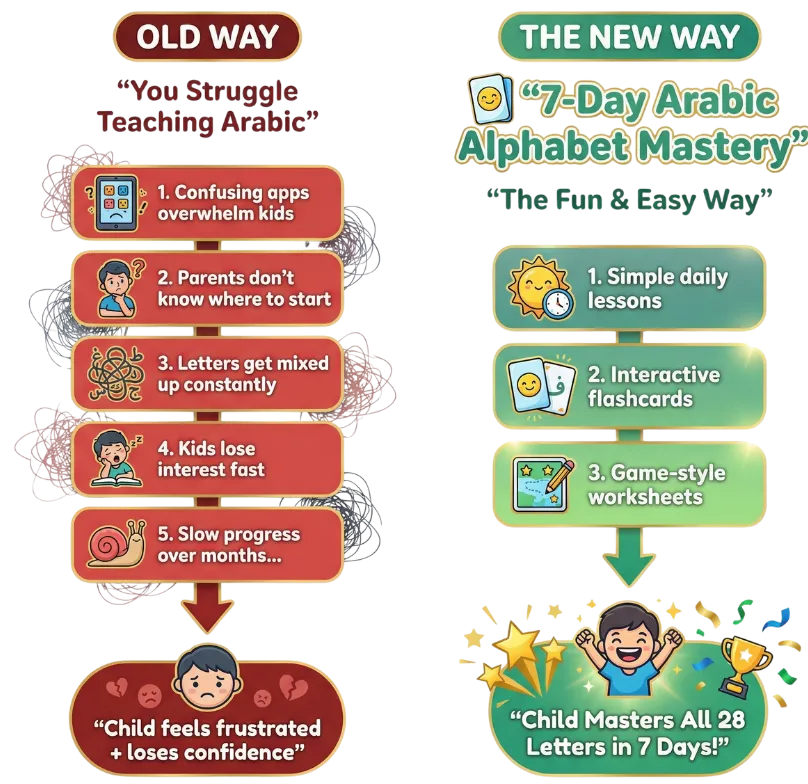 7-Day Arabic Alphabet Mastery Ebook (complete teaching system with daily lessons)
