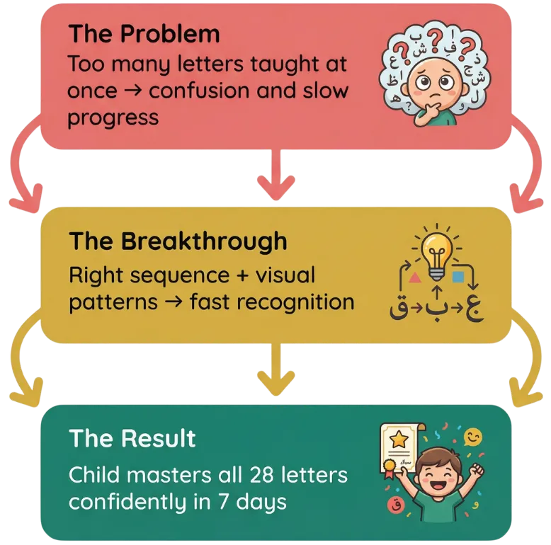 Parents with no Arabic knowledge successfully use this system because the guide walks you through everything step by step.