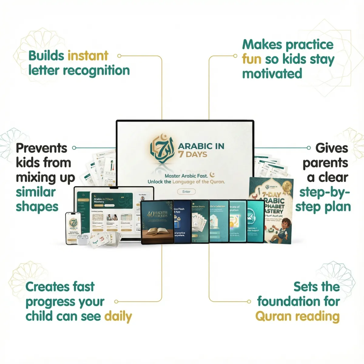 For less than two children's books, you could give your child the ability to read Arabic letters and build a foundation that lasts a lifetime.